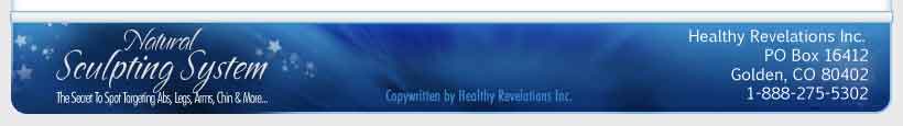 For More Natural Sculpting Success Stories Click Here These are not overnight miracle products. The results from customers reporting satisfaction only occured after using up to 6 treatments and consulting with Suzanne our phone coach. Results are not guaranteed for users. Healthy Revelations Inc. has been an A rated Better Business Bureau Company since 2007. We pride ourselves in excellent customer service and unique all natural products that have benefited thousands of people around the world. |
